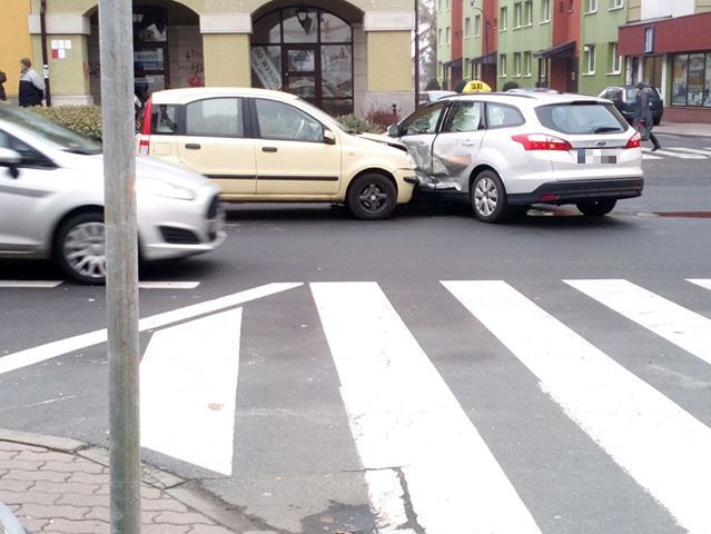 Chwilę po godzinie 11 pod lubińskim ratuszem doszło do stłuczki. Wyjeżdżająca z parkingu taksówka zderzyła się z fiatem.