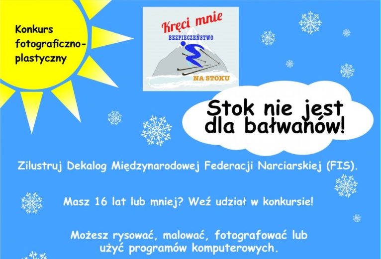 Masz mniej niż 16 lat? Policja zachęca wszystkie dzieci i młodzież do udziału w konkursie fotograficzno-plastyczny na zilustrowanie Dekalogu Reguł Międzynarodowej Federacji Narciarskiej FIS pn. „Stok nie jest dla bałwanów”. Organizatorem konkursu jest Biuro Prewencji Komendy Głównej Policji, Polski Związek Narciarski, Stowarzyszenie Instruktorów i Trenerów Narciarstwa PZN, Stołeczna Grupa Wojewódzka IPA oraz Fundacja PZU.