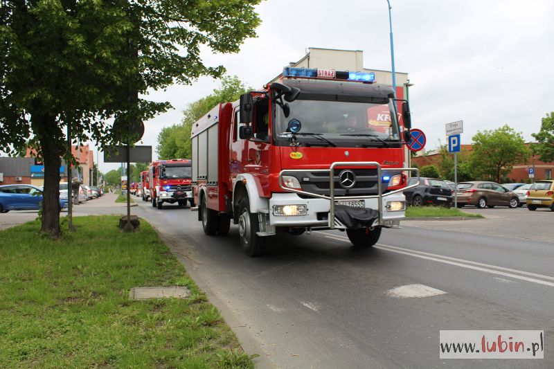 Kolumna czerwonych wozów strażackich na sygnale przejechała przez Lubin. Przechodnie przystawali, pytając jeden drugiego, co się stało.