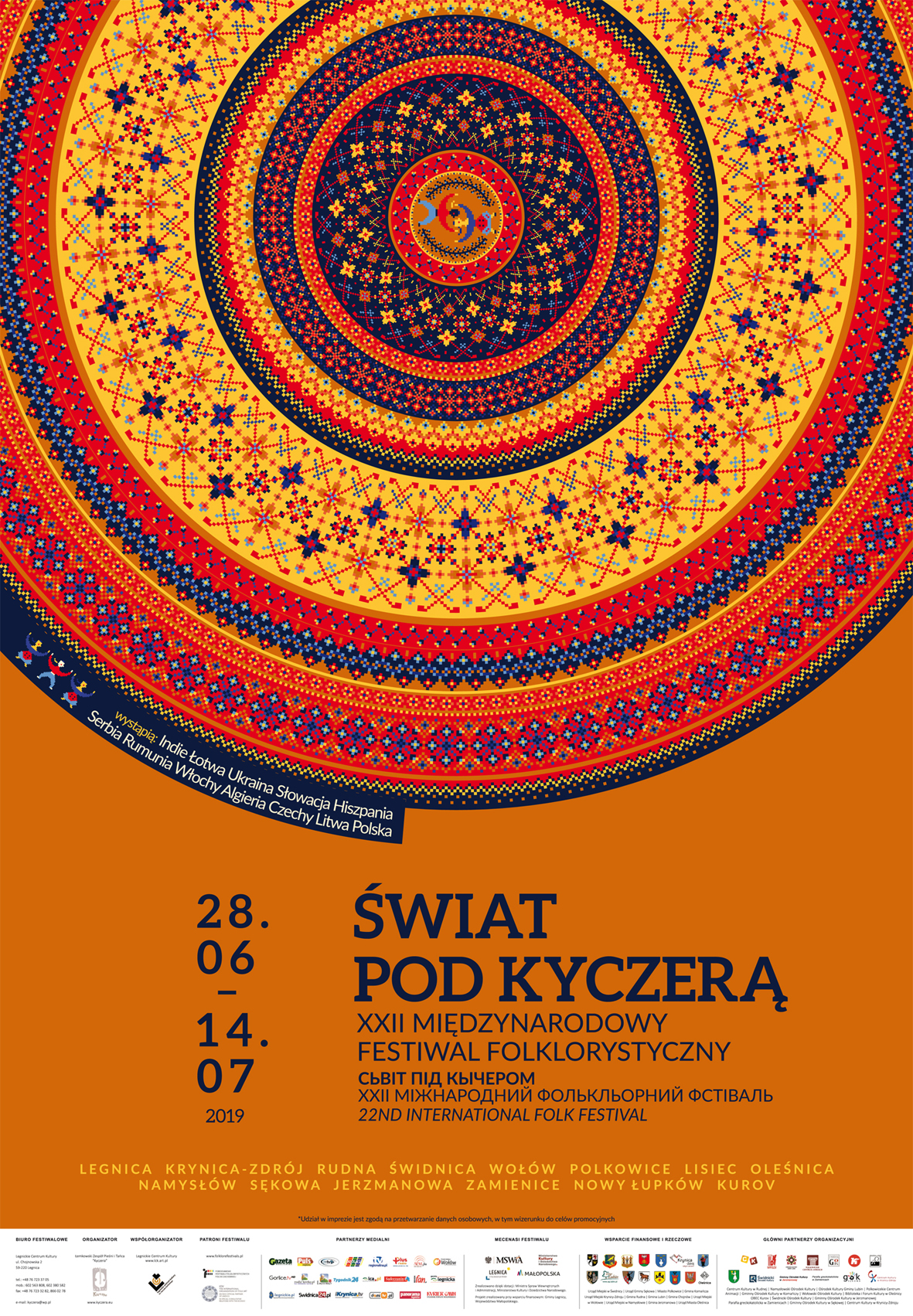 W sumie ponad 200 artystów, aż 17 festiwalowych dni, 16 dużych scen na Dolnym Śląsku, Opolszczyźnie, w Małopolsce i na Podkarpaciu, ponad 20 koncertów oraz korowody, animacje uliczne, warsztaty artystyczne, spotkania integracyjne – to wszystko wydarzy się podczas 22. Międzynarodowego Festiwalu Folklorystycznego „Świat pod Kyczerą”. Wstęp na wszystkie wydarzenia jest bezpłatny.