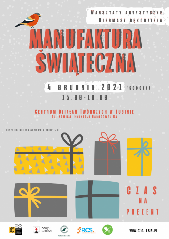 Jak mówią organizatorzy, to będzie prawdziwe święto handmade. Manufaktura Świąteczna, bo tak nazwano imprezę, potrwa trzy godziny: rozpocznie się o godz. 15 i zakończy o 18. W tym czasie w budynku Centrum Działań Twórczych przy ul. Komisji Edukacji Narodowej 6a odbywać się będzie kilka różnych warsztatów. Ich uczestnicy będą pracować nad ozdobami świątecznymi oraz własnoręcznie przygotowanymi prezentami.