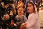 Ci którzy zaopatrzyli się już na kiermaszu, w dużej sali Muzy mogli posłuchać kolęd. Zaczęło się od tych najmniejszych wykonawców. Na scenie pojawiły się bowiem dzieci ze żłobków. W pierwszej grupie aplauz widowni wywołał malutki artysta, który, jak szeptano wśród publiczności, w przyszłości zapewne będzie sławnym wokalistą. Chłopca nie można było oderwać od mikrofonu. Jego koleżanka chciała się przyłączyć, jednak on zaaferowany nie zwracał na nią uwagi. Dziewczynka więc ze łzami w oczach stała z boku. Gdy już udało się odciągnąć chłopca od mikrofonu, ten pięknie i profesjonalnie ukłonił się widzom.