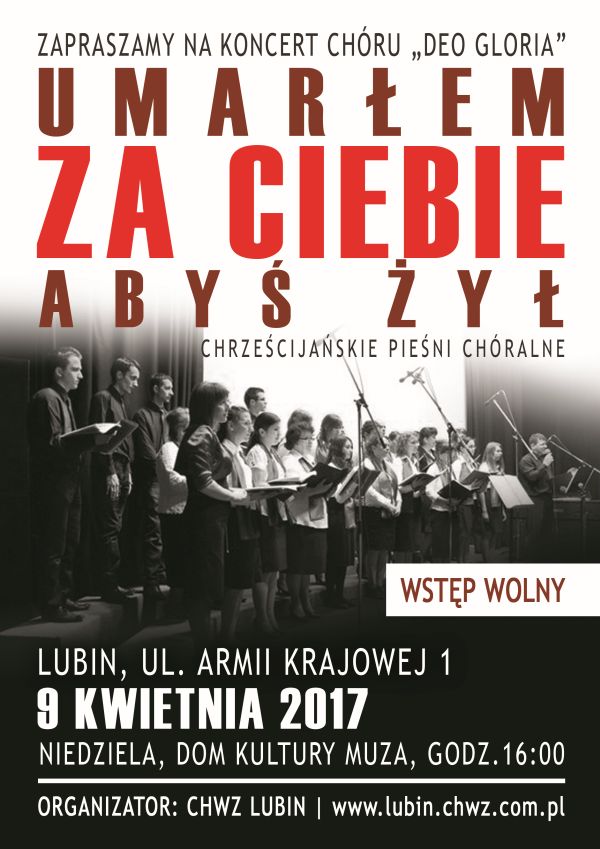 Z okazji Wielkanocy chór przygotował dla lubinian specjalny koncert zatytułowany „Umarłem za Ciebie, abyś żył”. Chórzyści wystąpią z repertuarem poświęconym tematyce śmierci i zmartwychwstania Jezusa.