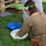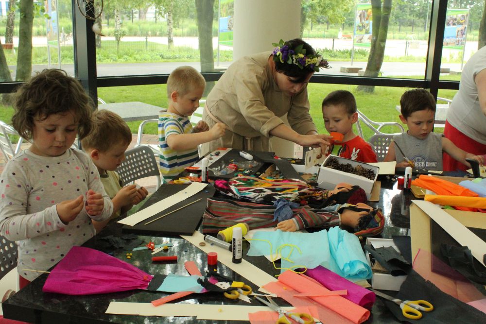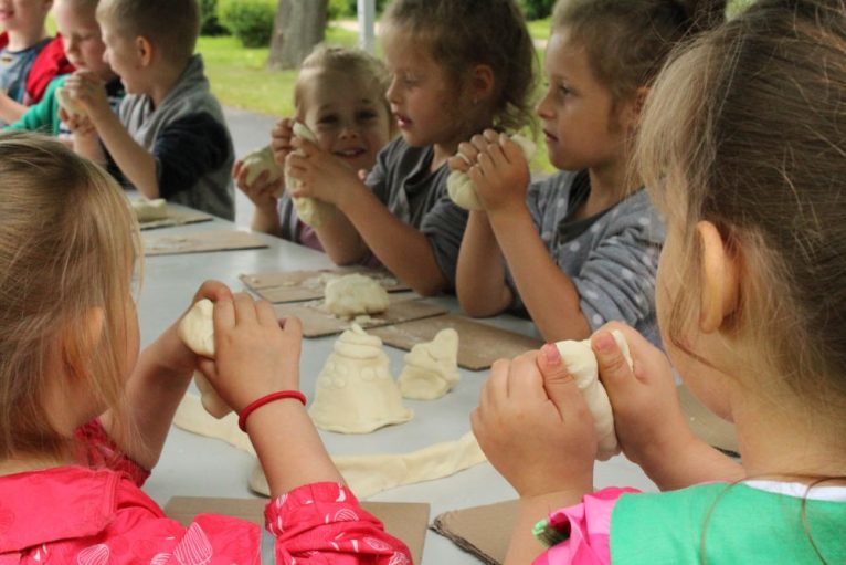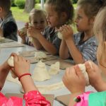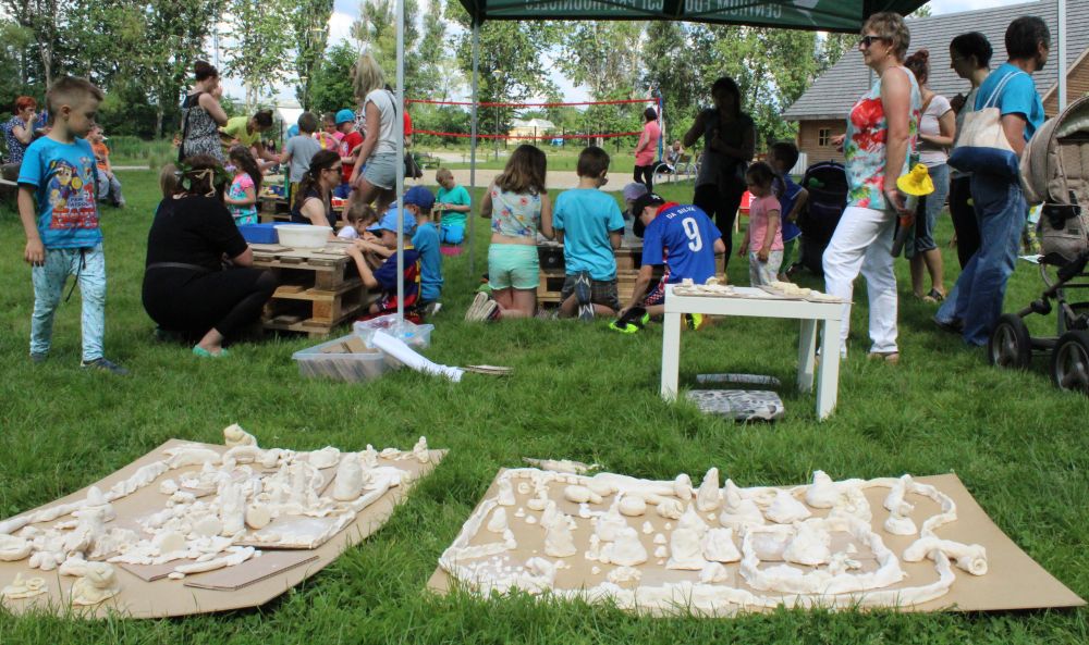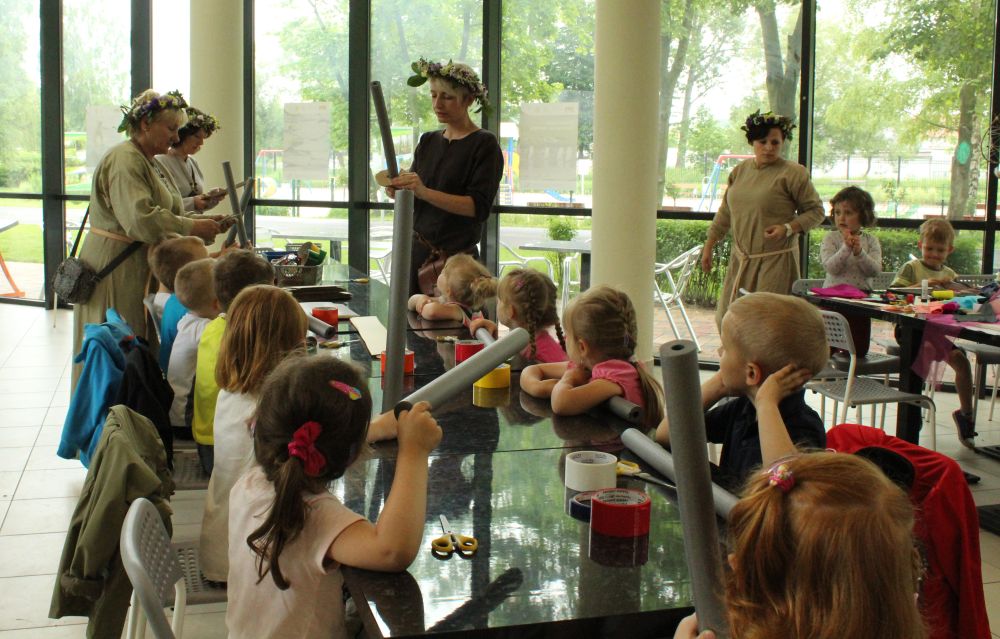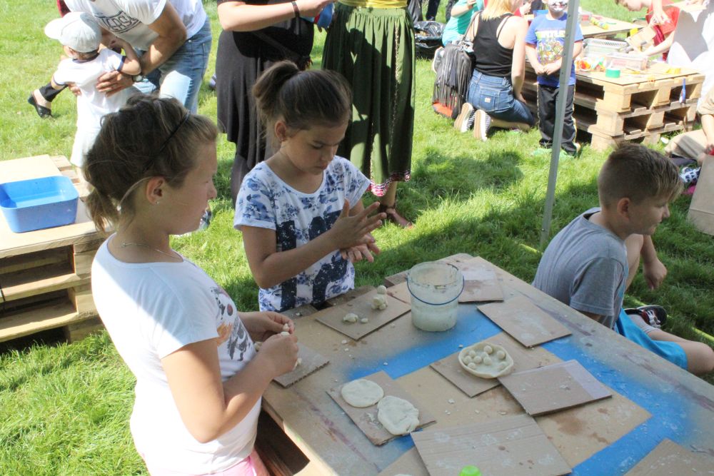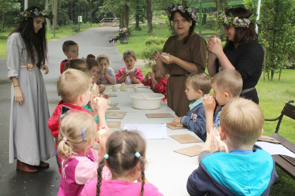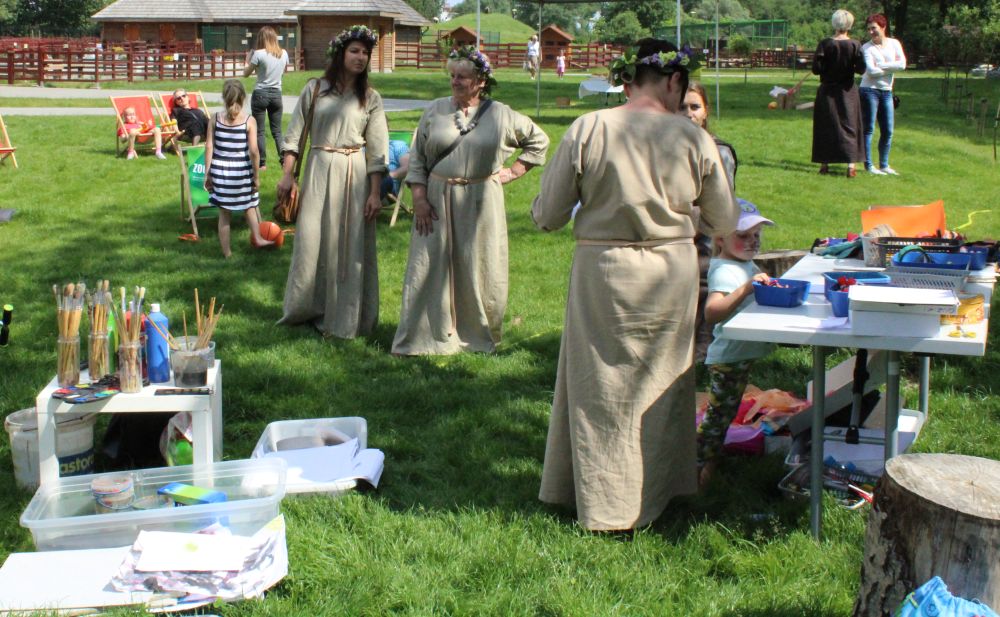 Dzieci do zajęć plastycznych zapraszają panie w strojach rodem z grodu piastowskiego. Ma to związek z tematem imprezy i 1050. rocznicą chrztu Polski. Najmłodsi z przedszkoli i szkół podstawowych własnoręcznie wykonują miecze drużyny książęcej, malują portrety Mieszka I i Dobrawy, aby zrozumieć, kim był władca, a także poznają życie w grodzie i tworzą piastowską architekturę z masy solnej.