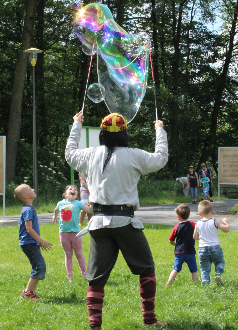 – Mieszko i Dobrawa, animatorzy w przebraniach, spotkają się też z dziećmi przy byłym amfiteatrze i oprowadzą je po parku. Będzie malowanie buzi, a także pokaz wielkich baniek mydlanych. Następnie szczudlarze zaproszą najmłodszych do zabaw sprawnościowych. A o 15 zapraszamy na tort urodzinowy naszego minizoo – mówi Agata Bończak, kierownik Centrum Edukacji Przyrodniczej.