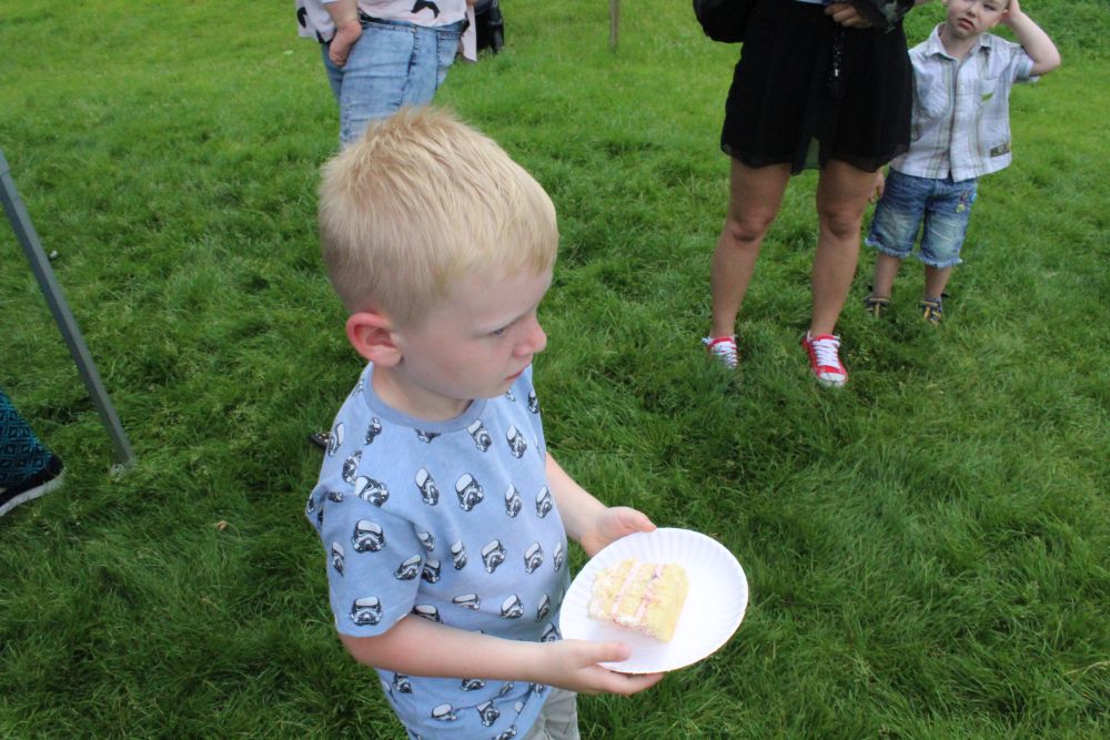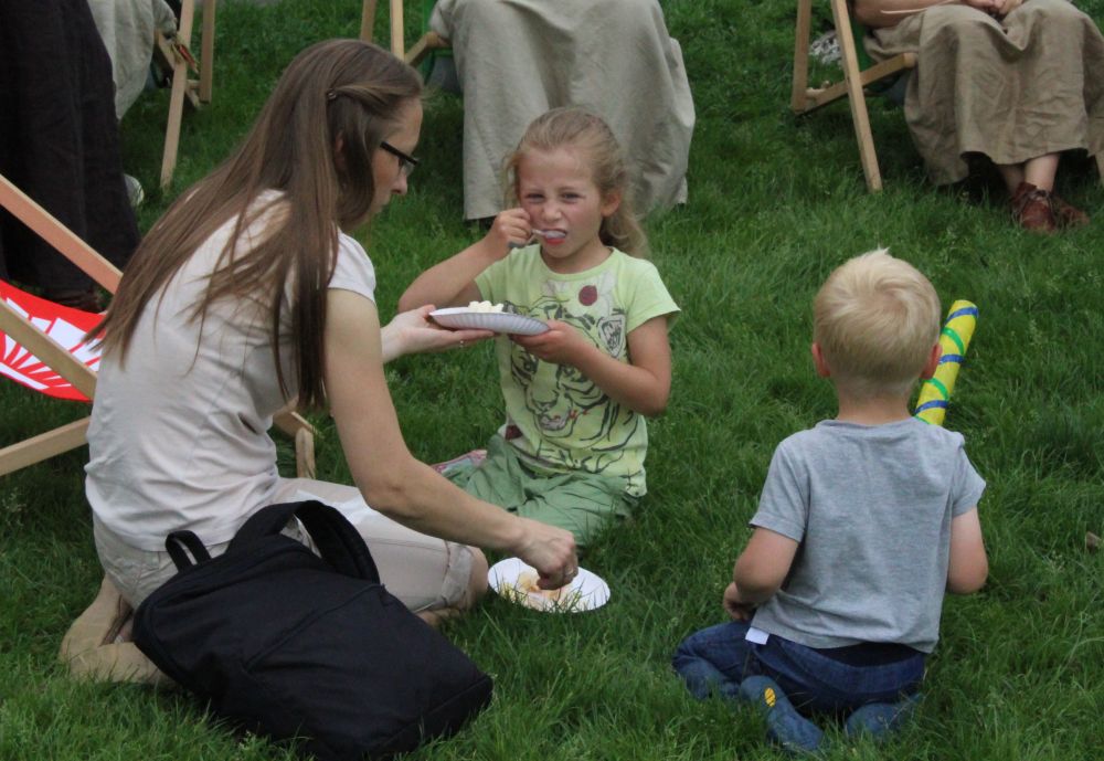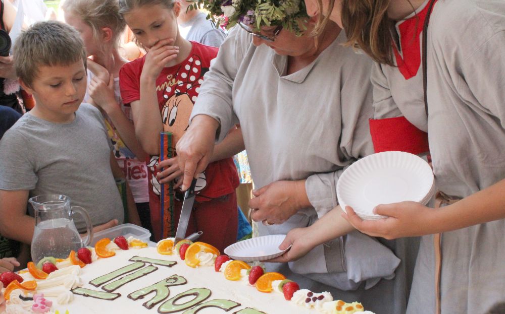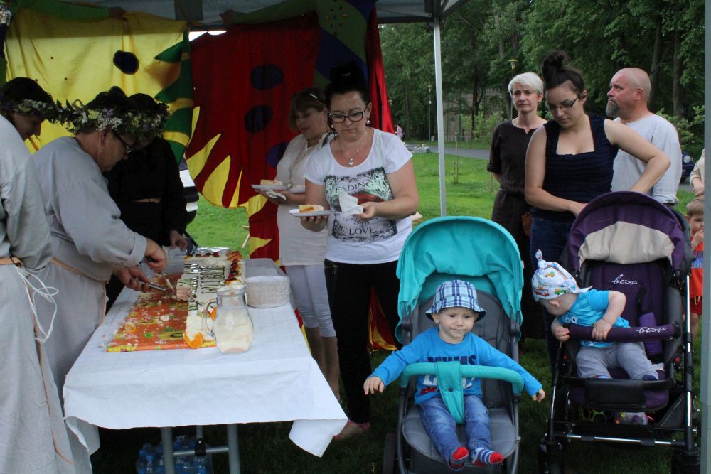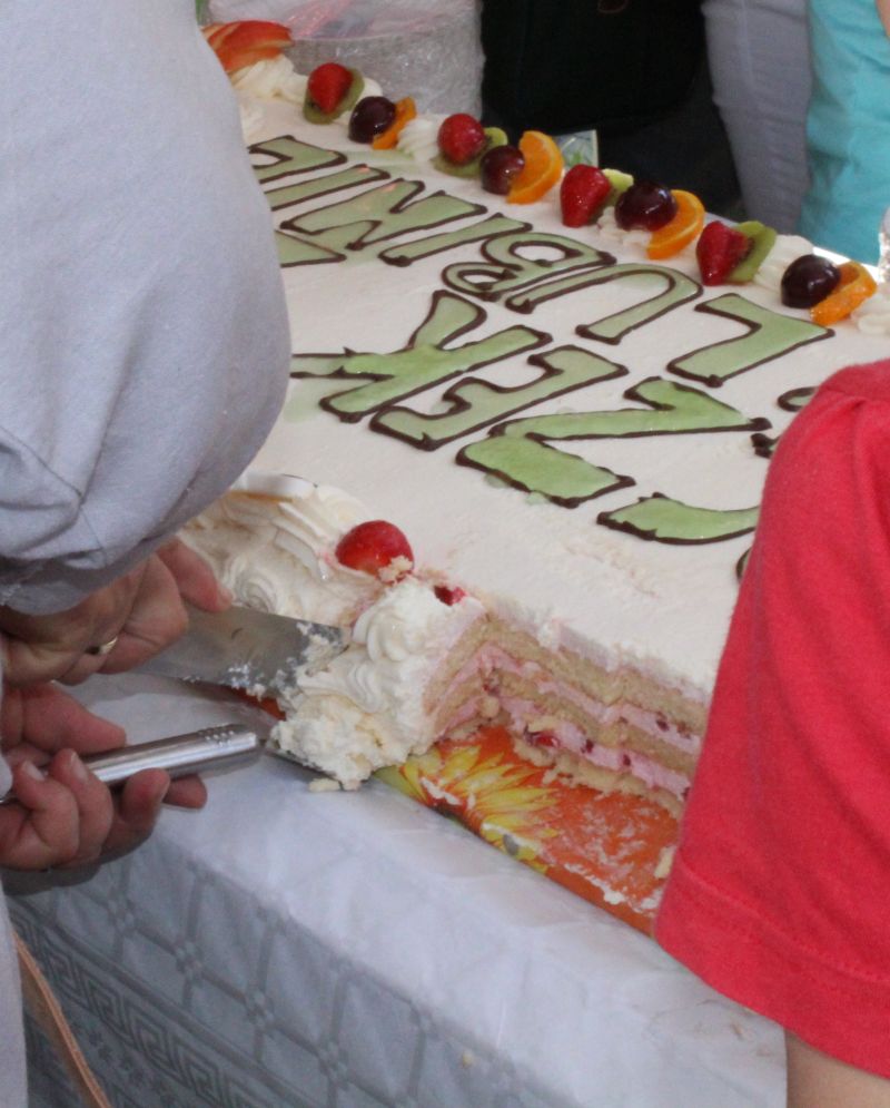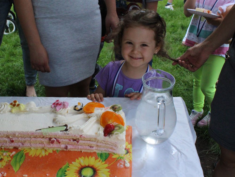 Truskawkowo-śmietankowy urodzinowy tort zniknął w jednej chwili, choć był całkiem spory – ważył 21 kilogramów. Dzieciom bardzo smakował, co słychać było z każdej strony. Dorośli też chętnie się częstowali.