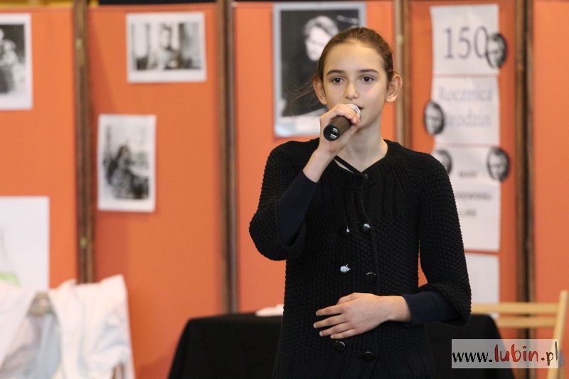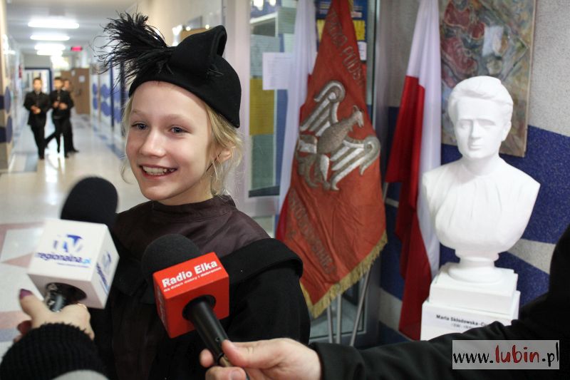 – Pani mi powiedziała, że jestem bardzo podobna do tej polskiej uczonej – uśmiecha się Olga Tyrpak z klasy Vb, która wcieliła się dziś w rolę noblistki. Strój Olgi został wypożyczony z legnickiego teatru, a dziewczynka, zanim przywdziała suknię z epoki, trochę poczytała o Skłodowskiej-Curie, jej dokonaniach i życiu.
