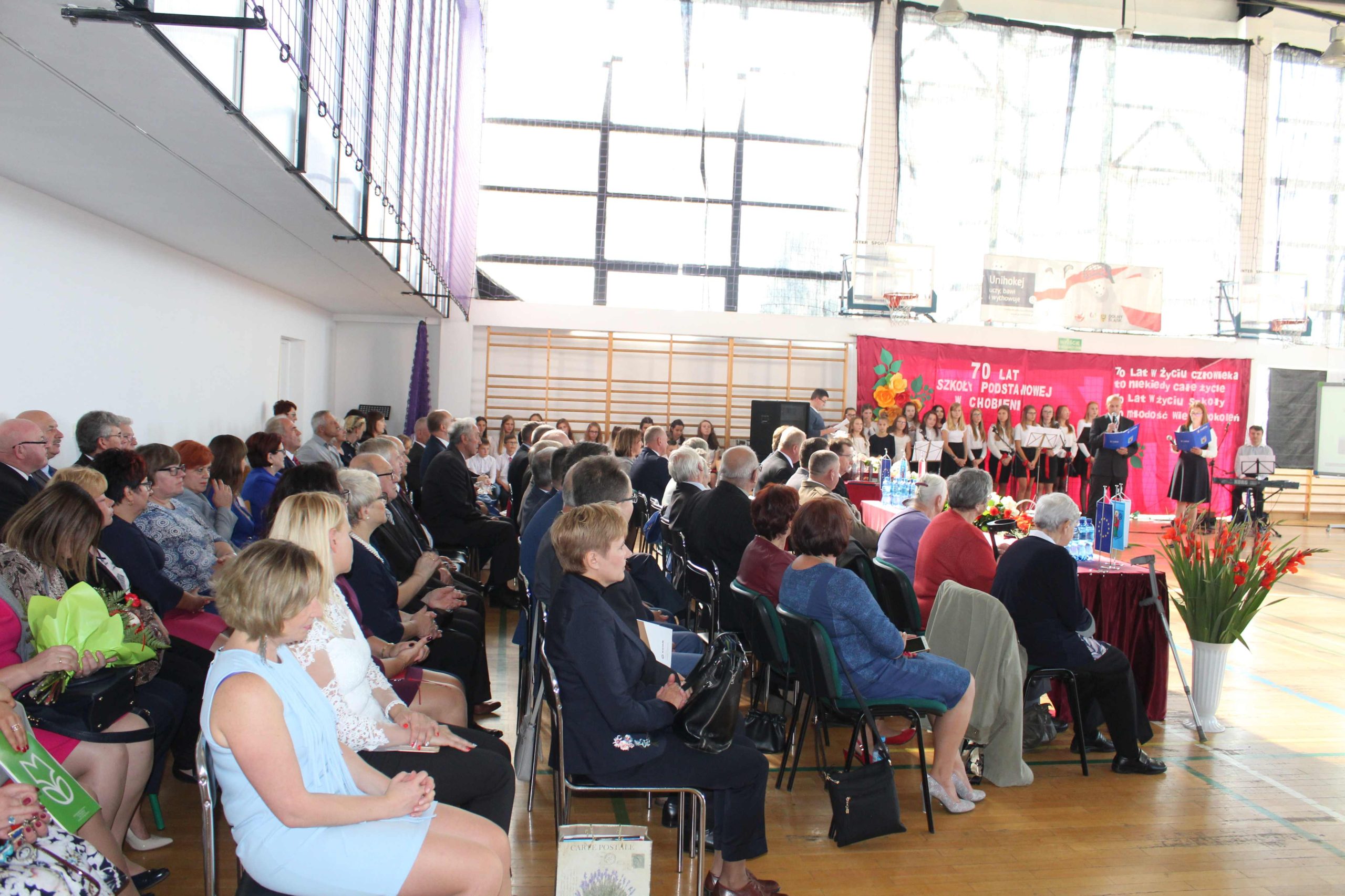 Niewiele placówek oświatowych może poszczycić się tak bogatym dorobkiem jak Szkoła Podstawowa im. Bohaterów Westerplatte w Chobieni. „70 lat w życiu człowieka to niekiedy całe życie, 70 lat w życiu szkoły to młodość wielu pokoleń” – napis o takiej treści można było dostrzec podczas apelu związanego z obchodami tego wyjątkowego dla szkoły święta. Znakomicie pasował on do podniosłej atmosfery jubileuszu i obecności na sali absolwentów w różnym wieku.