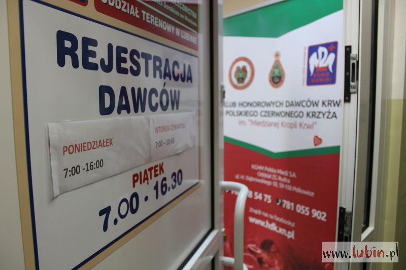 Punkt krwiodawstwa w Lubinie czynny jest w poniedziałki od 7 do 16, w piątki od 7 do 16.30. Natomiast we wtorki, środy i czwartki można oddać krew w godzinach 7-10.45.
