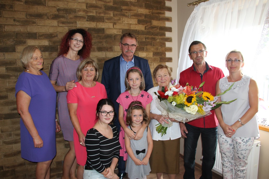 Olga Fecko z Chróstnika obchodziła właśnie 90. urodziny. W doskonałej formie przyjęła życzenia, kwiaty i upominki od wójta Tadeusza Kielana, sołtys Elżbiety Białosiewicz oraz Janiny Muchy, mieszkanki Osieka, byłej radnej gminy Lubin.