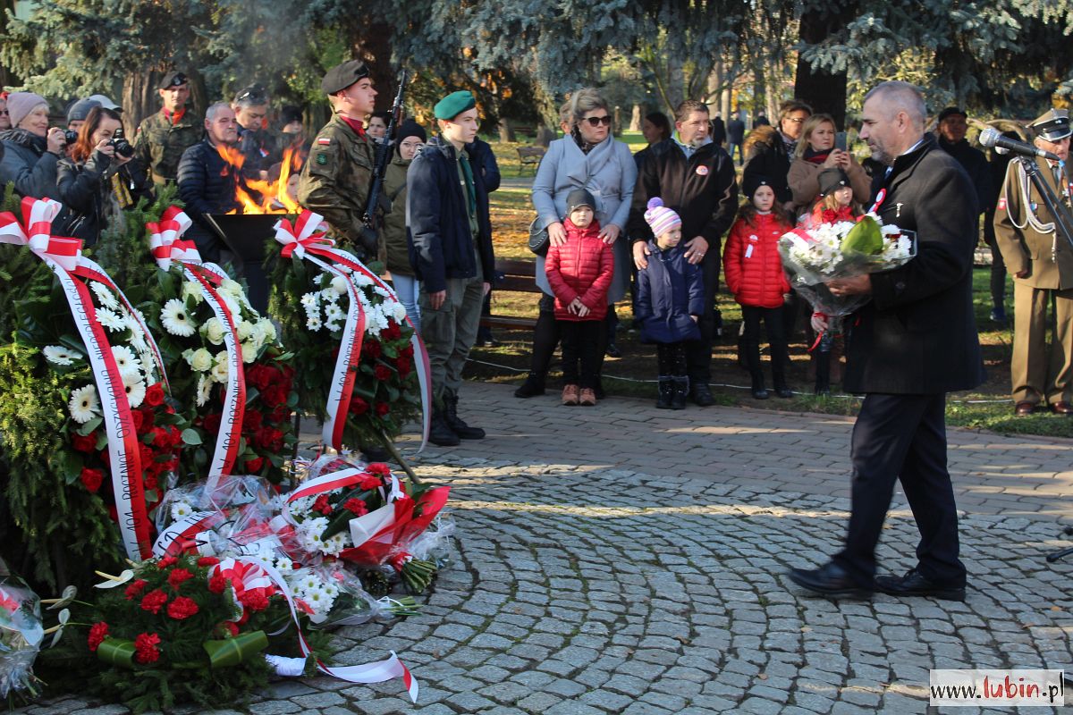 W tym roku program obchodów nieco zmieniono. Nie było biało-czerwonego przemarszu z kościoła pod pomnik marszałka Józefa Piłsudskiego. Wszystko rozpoczęło się złożeniem kwiatów. W uroczystości wzięli udział przedstawiciele samorządów, posłowie, a także mieszkańcy Lubina.