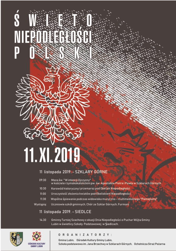 Z okazji Święta Niepodległości 11 listopada rozegrany zostanie także Gminny Turniej Szachowy o Puchar Wójta Gminy Lubin w Szkole Podstawowej w Siedlcach. Zapisy rozpoczną się o godzinie 14.30 na miejscu, a sam turniej pół godziny później.