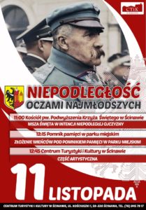 O 12.45 w Centrum Turystyki i Kultury w Ścinawie rozpocznie się część artystyczna obchodów. Wystąpią zwycięzcy gminnego Muzycznego Przeglądu Piosenki Patriotycznej, Żołnierskiej i Harcerskiej oraz młodzi artyści z grupy teatralnej Zaczarowana Kurtyna.