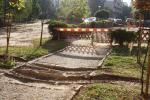 Rzeczywiście, podwórze wygląda jak opuszczony teren budowy. Po pracach robotników pozostało zniszczone ogrodzenie placu zabaw i chodniki. Porozrzucane są siatki, pręty – całość niezabezpieczona.
