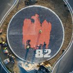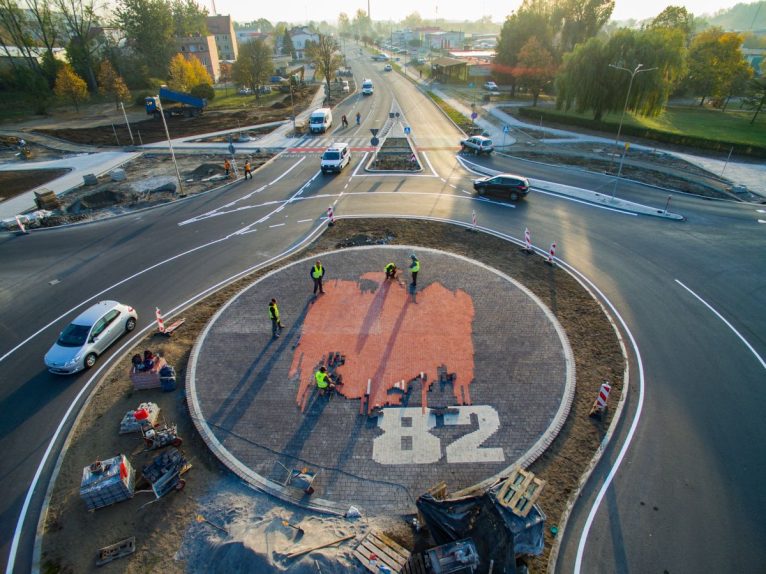 Z góry widać go doskonale – czerwony, krwawiący orzeł w koronie, a pod nim liczba 82, symbolizująca rok Zbrodni Lubińskiej. Ten znak – ułożony z kostek w różnym kolorze – można podziwiać na środku ronda im. Pamięci Ofiar Zbrodni Lubińskiej.