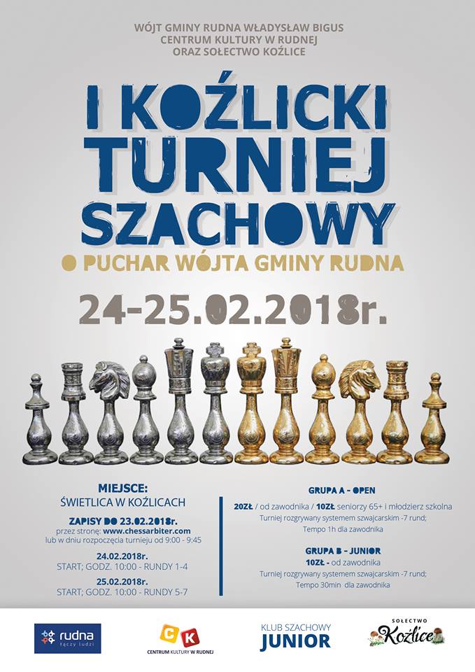 I Koźlicki Turniej Szachowy o Puchar Wójta rozpocznie cykl turniejów szachowych w gminie Rudna. Wielki finał zostanie rozegrany podczas obchodów stulecia odzyskania niepodległości przez Polskę.