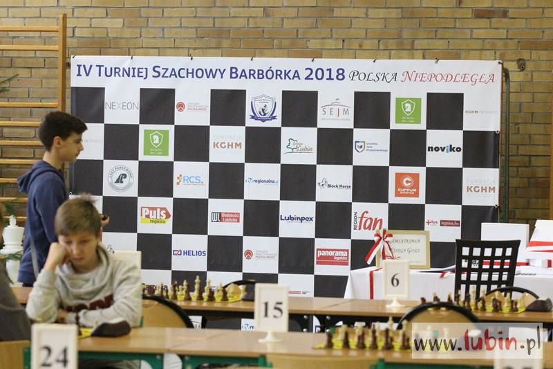 IV Turniej Szachowy Barbórka 2018 – Polska Niepodległa, odbył się w sali Zespołu Szkół nr 2. Pomysłodawca, dyrektor Bogdan Dudek podtrzymuje rozpoczętą kilka lat temu tradycję, która zyskuje aprobatę coraz to szerszego grona odbiorców. – Teraz dodatkowo połączyliśmy obchody odzyskania niepodległości. Akcenty są widoczne, a jednym z ważniejszych będzie wręczenie uczestnikom flagi biało-czerwonej ufundowanej przez prezesa Rady Ministrów Mateusza Morawieckiego. To wyjątkowa pamiątka dla uczestników – komentuje dyrektor Zespołu Szkół nr 2 w Lubinie.