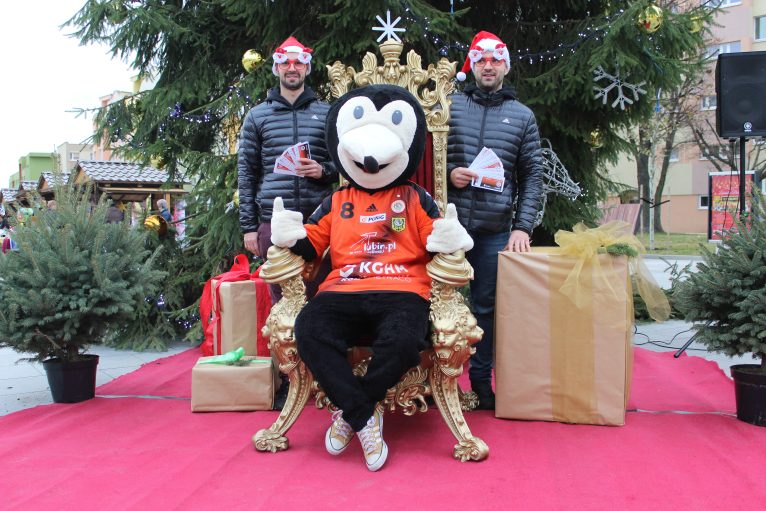 Mikołaj Szymyślik i Łukasz Kużdeba wraz z klubową maskotką – Krecikiem udali się na lubiński Rynek, gdzie zapraszali na niedzielne spotkanie z aktualnym brązowym medalistą PGNiG Superligi Mężczyzn, Azotami Puławy.