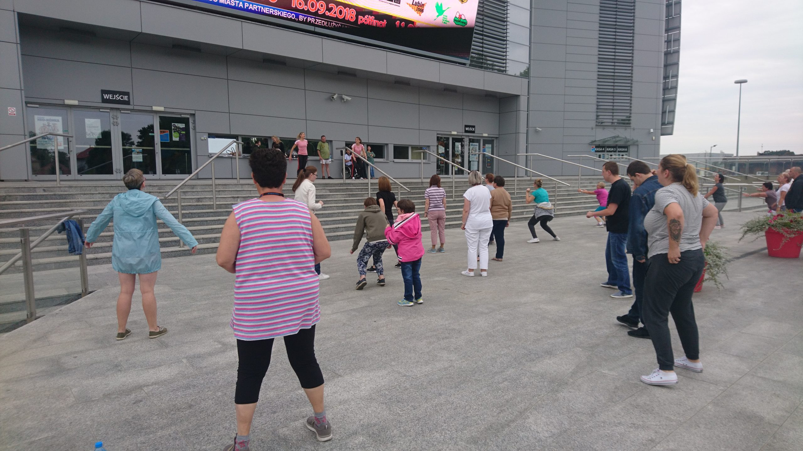 Tym razem zajęcia odbyły się przed halą Regionalnego Centrum Sportowego. Trening dla seniorów oraz podopiecznych Stowarzyszenia „Dać Nadzieję” poprowadziły zawodniczki Metraco Zagłębia Lubin, Małgorzata Buklarewicz oraz Adrianna Górna.