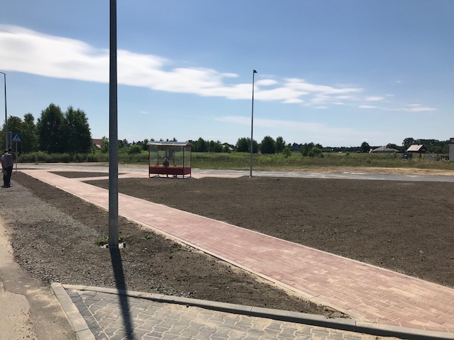 Zakres zadania objął budowę pętli autobusowej długości ok 84,50 m i szerokości jezdni 5,5 m o nawierzchni z kostki betonowej oraz budowę chodnika wraz z peronem i wiatą przystankową.