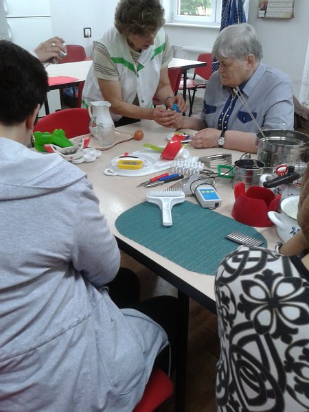 Podczas zajęć z czynności dnia codziennego, instruktor zaprezentował sprzęt gospodarstwa domowego z jakiego mogą dodatkowo korzystać osoby niewidome i niedowidzące. Udzielono między innymi informacji, jak poradzić sobie samemu w codziennych czynnościach np.: nalać zupę na talerz, unikając rozlewania, odpowiedniego sposobu używania sztućców, rozpoznania strony ostrości noża, umiejętności rozpoznania wielkości spożywanej porcji z dokładnym rozmieszczeniem posiłku na talerzu według tarczy zegarowej.
