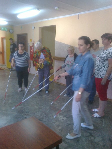 Szkolenie dotyczyło między innymi orientacji przestrzennej, czynności dnia codziennego, pisma punktowego – Braille’a. Wzięło w nim udział 40 osób, w tym 9 przewodników, byli to mieszkańcy gminy miejskiej i gminy wiejskiej Lubin oraz gmin Ścinawa, Rudna.