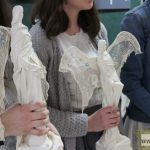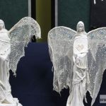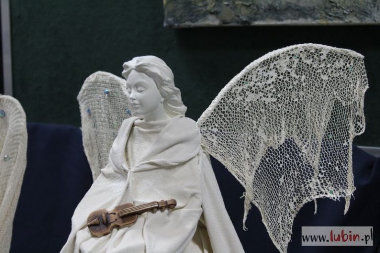 – Powertex wywodzi się ze Szwajcarii. To nowoczesna technika, która dopiero wchodzi na polski rynek. Polega na utwardzaniu tkanin i materiałów, na płaszczyznach i na przedmiotach 3D. Metoda ta wpisuje się w nowoczesne, ekologiczne podejście do sztuki – pozwala wykorzystać dosłownie wszystko, nawet stary bawełniany podkoszulek. Tak właśnie powstały nasze anioły – mówi Katarzyna Węglińska.