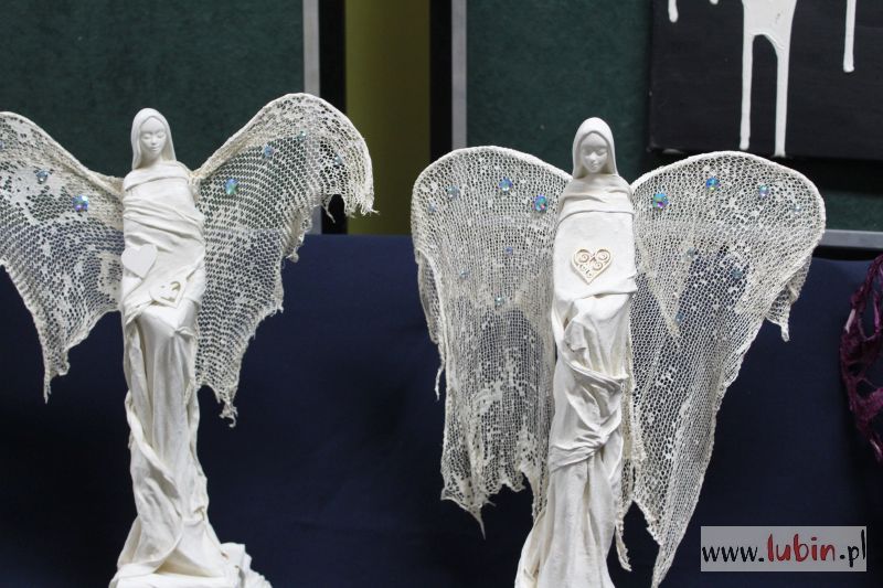 – Powertex wywodzi się ze Szwajcarii. To nowoczesna technika, która dopiero wchodzi na polski rynek. Polega na utwardzaniu tkanin i materiałów, na płaszczyznach i na przedmiotach 3D. Metoda ta wpisuje się w nowoczesne, ekologiczne podejście do sztuki – pozwala wykorzystać dosłownie wszystko, nawet stary bawełniany podkoszulek. Tak właśnie powstały nasze anioły – mówi Katarzyna Węglińska.