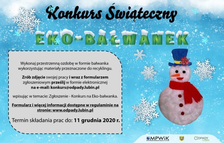 Powinny być oryginalne, świąteczne, a do tego wykonane ze śmieci. Trwa konkurs na eko-bałwanka, w którym może wziąć udział każdy mieszkaniec Lubina. Autor najlepszej pracy otrzyma bon o wartości 300 zł.