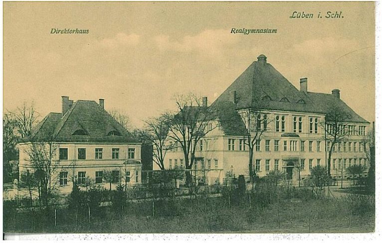 Budynek dzisiejszego I LO im. Mikołaja Kopernika, który wybudowano w latach 1908-1911 dla potrzeb Realgymnasium. Budynek ten jest najbardziej znany z pocztówek, do których zdjęcia wykonano z góry, z dzwonnicy dużego kościoła. Tym razem widok budynku w ujęciu z lewej strony z poziomu gruntu.