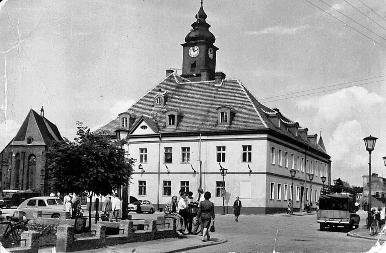 Tym razem zaczynamy od pocztówki nieco młodszej. Powojenna widokówka Lubina, z początku lat sześćdziesiątych, ukazująca ratusz i lubiński rynek jeszcze przed zabudową blokami od strony południowo-zachodniej, stąd bezpośredni widok na duży kościół.