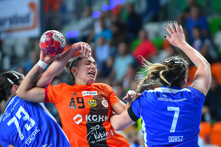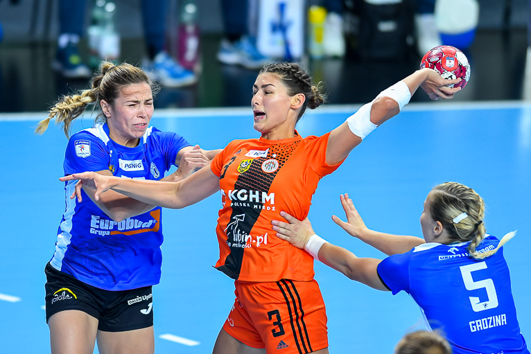 Ależ to było otwarcie! Pierwszą bramkę w nowym sezonie PGNiG Superligi Kobiet zdobyła Daria Zawistowska w drugiej minucie spotkania, a na 2:0 podwyższyła dwie minuty później. Pierwszą bramkę dla JKS zdobyła w piąte minucie Vallianstina Nestsiaruk, ale kolejne trafienia były już autorstwa Miedziowych. W siódmej minucie Zagłębie prowadziło 5:1, wchodząc w mecz jak na mistrza przystało. O czas chwilę później poprosił szkoleniowiec gości Reidar Moistadt, jednak znów bramkę zdobyło Zagłębie, a konkretnie wyróżniająca się na parkiecie Emilia Galińska, która przed upływem dziesiątej minuty miała na swoim koncie już cztery bramki! Zagłębie w pewnym momencie prowadziło już 8:2, ale przyjezdne nie zamierzały składać broni – w 20. minucie było tylko 10:9. Lubinianki „odpaliły” znów pod koniec pierwszej połowy, zaczynając budować swoją przewagę. W tym czasie na listę strzelców wpisała się nawet Monika Maliczkiewicz, która dobyła bramkę, rzucając przez całe boisko. Do przerwy mistrzynie Polski prowadziły 18:13.