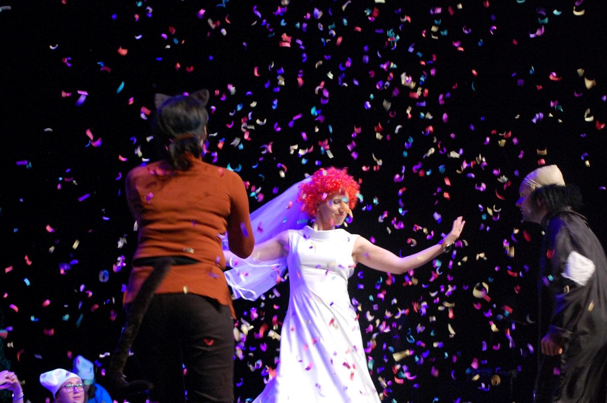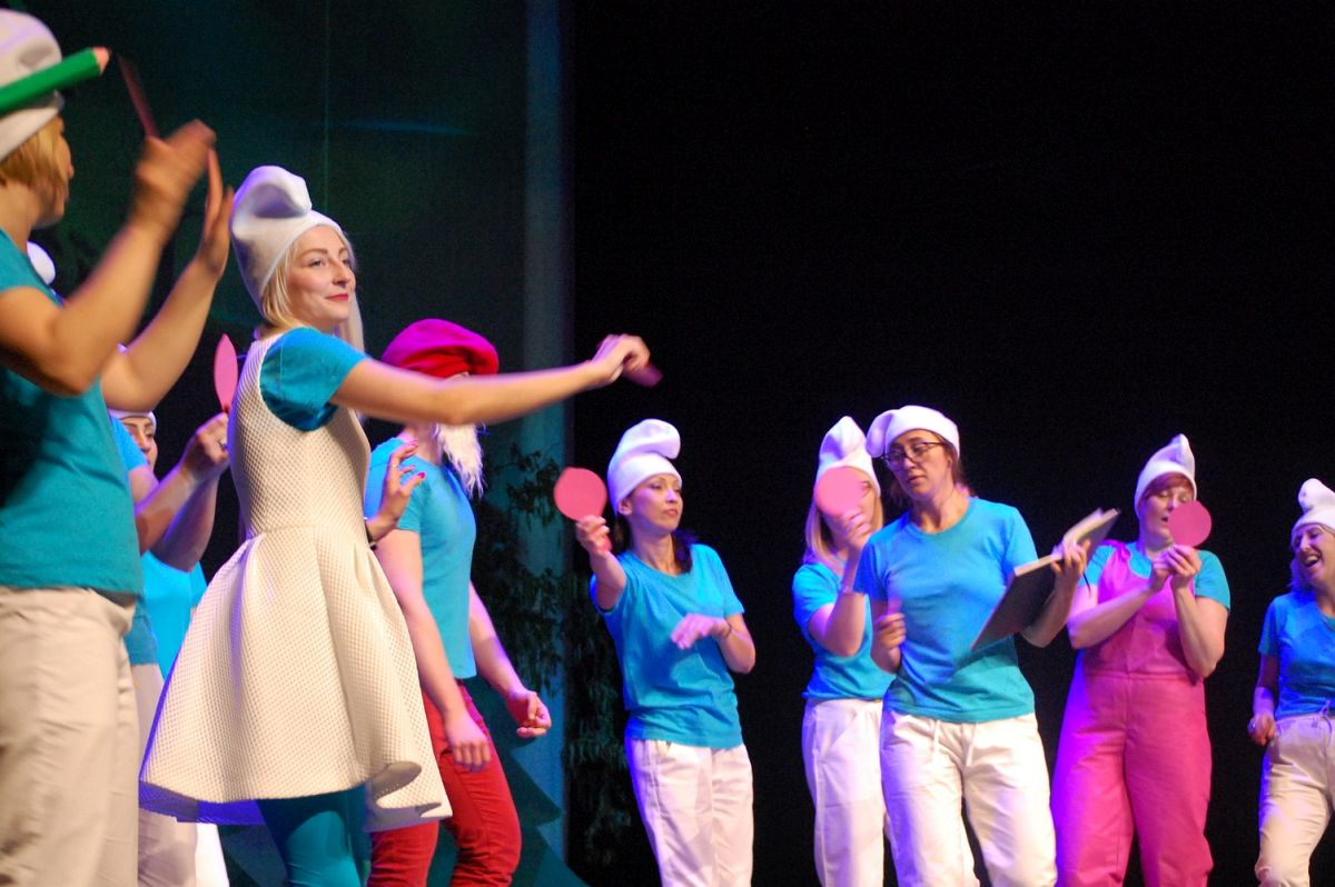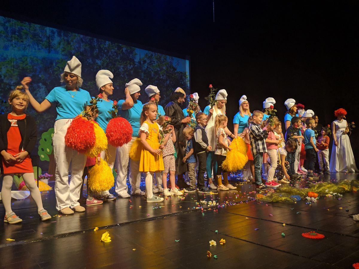 Na scenie przed dziećmi w zdecydowało się wystąpić 16 rodziców. Dodatkowo jeden z tatusiów zajął się muzyką. Scenariusz do przedstawienia „Smerfolandia” przygotowały nauczycielki z przedszkola: Katarzyna Zielińska, Agata Dulemba, Joanna Ciotkowska oraz Katarzyna Kozłowska, a scenariusz do przedstawienia „Zamieszanie w Krainie Bajek” przygotowała Edyta Braszczok z DDP Senior w Lubinie.