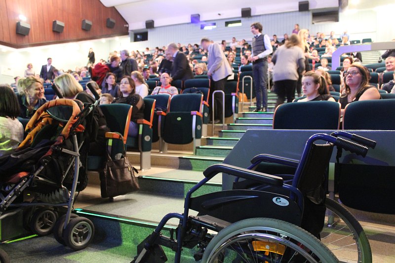Również na widowni zasiadły zarówno osoby niepełnosprawne, jak i w pełni sprawne.