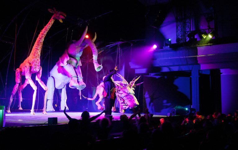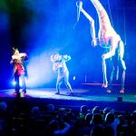 Będzie można zobaczyć lalki i marionetki zwierząt w ich naturalnych wielkościach, czyli jak mówią o nich sami twórcy – nadmarionety. Głównymi lalkowymi bohaterami tego niezwykłego cyrkowego widowiska jest przystojna żyrafa, zakochana w treserze, śpiewaczka i tancerka, potężny lew, który ryczeć potrafi i chce pożreć tresera oraz słoń, wirtuoz gry na trombonie, który umie stać na trąbie i potrafi latać. Będą też treserzy, siłacze, żonglerzy i clowny.