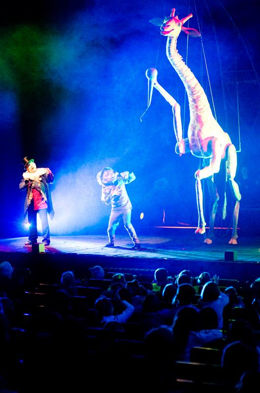 Będzie można zobaczyć lalki i marionetki zwierząt w ich naturalnych wielkościach, czyli jak mówią o nich sami twórcy – nadmarionety. Głównymi lalkowymi bohaterami tego niezwykłego cyrkowego widowiska jest przystojna żyrafa, zakochana w treserze, śpiewaczka i tancerka, potężny lew, który ryczeć potrafi i chce pożreć tresera oraz słoń, wirtuoz gry na trombonie, który umie stać na trąbie i potrafi latać. Będą też treserzy, siłacze, żonglerzy i clowny.