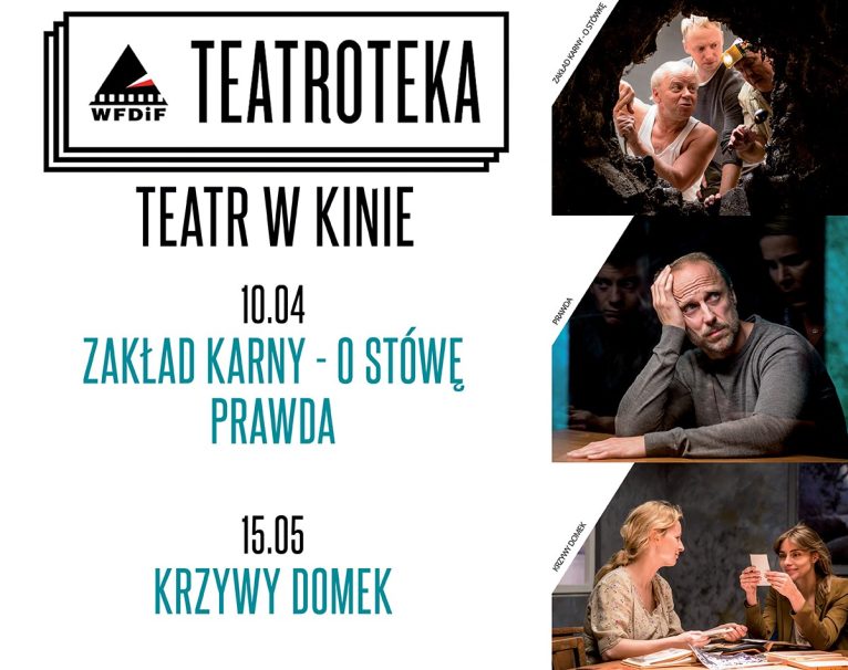 Ten cykl spodoba się szczególnie wielbicielom teatru. Jednak nie do końca będzie to teatr, a raczej coś pomiędzy teatrem telewizji a filmem. Kino Muza wystartowało z Teatroteką. Najbliższy pokaz 15 maja. Będzie można obejrzeć „Krzywy domek”.