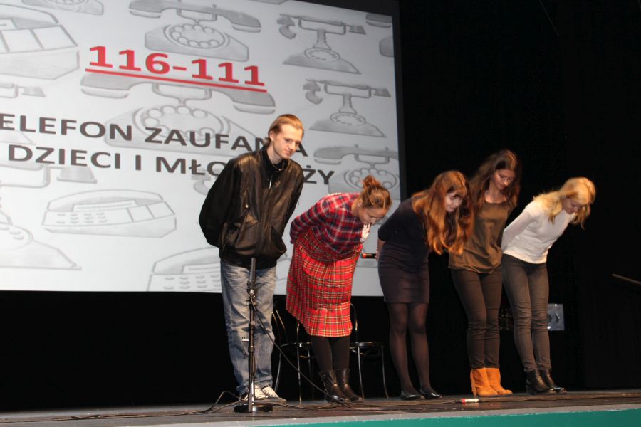– Takie problemy, jakie tu dzisiaj przedstawiliśmy, zdarzają się w życiu. Teatr jest takim narzędziem, które można wykorzystać w rozwiązywaniu rożnych problemów. Wiele sytuacji można wyraziście przedstawić na scenie, do ludzi bardziej to dociera niż nudny wykład. Teatr chwyta za serce – mówi Natalia Kawka z zespołu TEB Edukacja, który za swój występ otrzymał drugą nagrodę. – Na pewno łatwiej jest nagrać film, który można dokładnie dopracować, niż wystąpić na żywo przed publicznością. Ale udało się doskonale, nawet lepiej niż w filmie. Gratulujemy naszym głosom, którzy wystąpili w imieniu szkoły na scenie i dziękujemy naszej anglistce, pani Karolinie Moździerz za to, że z nami pracowała – dodają widzowie, uczniowie TEB Edukacja.