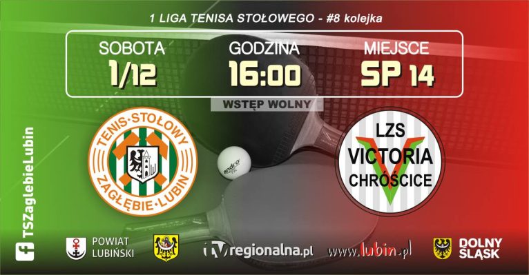 TS Zagłębie Lubin pod wodzą trenera Sławomir Słowiński rozegra mecz 8. kolejki z LZS Victorią Chróścice. Zagłębie Lubin wystąpi w składzie: Paulina Knyszewska, Ada Jończyk, Natalia Matwiszyn, Ewelina Matwiszyn. Zapraszamy wszystkich kibiców i sympatyków tenisa stołowego. Wstęp na mecz jest bezpłatny.