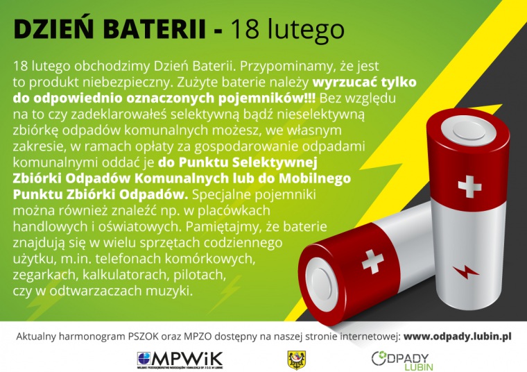 Od 1997 roku w lubińskich szkołach i przedszkolach zebrano ponad 69 ton baterii. Dlaczego o tym piszemy? Bo dziś, 18 lutego, przypada Dzień Baterii, a te, choć małe i niepozorne, mogą wyrządzić wiele szkód w środowisku.