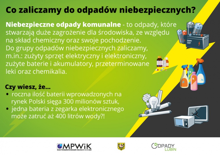 Takich punktów, gdzie można oddać baterie, jest na terenie Lubina wiele. W szkołach, przedszkolach, hipermarketach. Można jest też oddać w każdym punkcie handlowych o powierzchni 25 m2 – każdy taki sprzedawca jest bowiem zobowiązany do nieodpłatnego przyjęcia zużytych już baterii. – Zgromadzoną większą ilość baterii czy innych niebezpiecznych odpadów możemy też zawieźć do Punktu Selektywnej Zbiórki Odpadów Komunalnych przy ulicy Zielonej 1 lub oddać do Mobilnego Punktu Zbiórki Odpadów, czyli samochodu, który co dwa tygodnie objeżdża miasto, pojawiając się w wyznaczonych miejscach, zgodnie z harmonogramem pracy MPZO – dodaje Beata Bieniek.