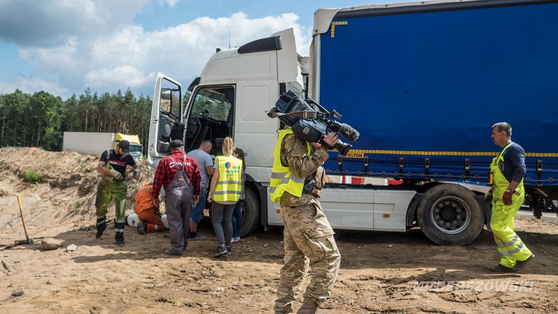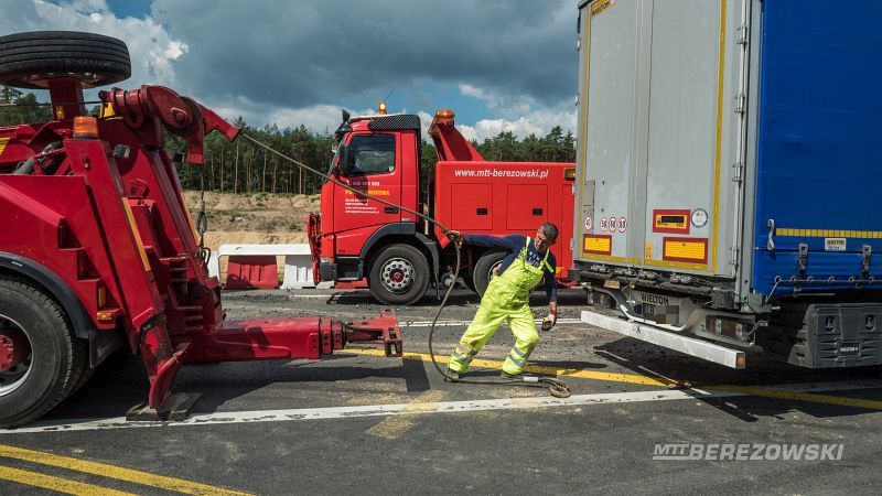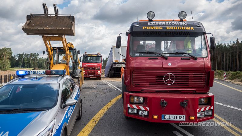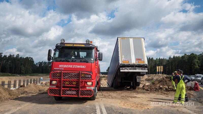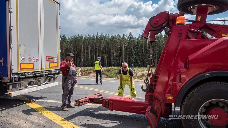 Żeby wyciągnąć samochód, trzeba było sprowadzić specjalny holownik. Na drodze przez jakiś czas były utrudnienia w ruchu. TIR-a udało się wyciągnąć z rowu około południa.