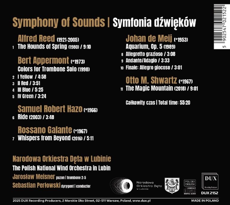 Właśnie ukazała się unikatowa płyta Narodowej Orkiestry Dętej w Lubinie. Album „Symphony of Sounds” to pierwszy w Polsce album prezentujący repertuar symphonic wind – muzykę o symfonicznej skali i dramaturgii, komponowaną specjalnie na skład orkiestry dętej.