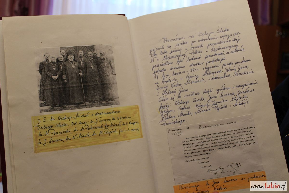 Ksiądz Bogdan Repeła jest szóstym proboszczem lubińskiej parafii prawosławnej i sprawuje tę funkcję od 15 lat. Bardzo ciekawie opowiada o jej historii, pokazując nam stare albumy, wypełnione wpisami i zdjęciami. A czas ku temu jest szczególny, bo właśnie przypada wyjątkowa rocznica.