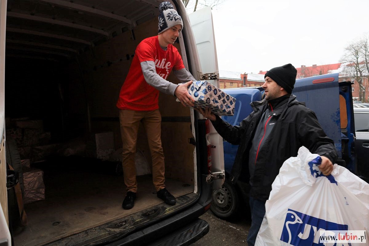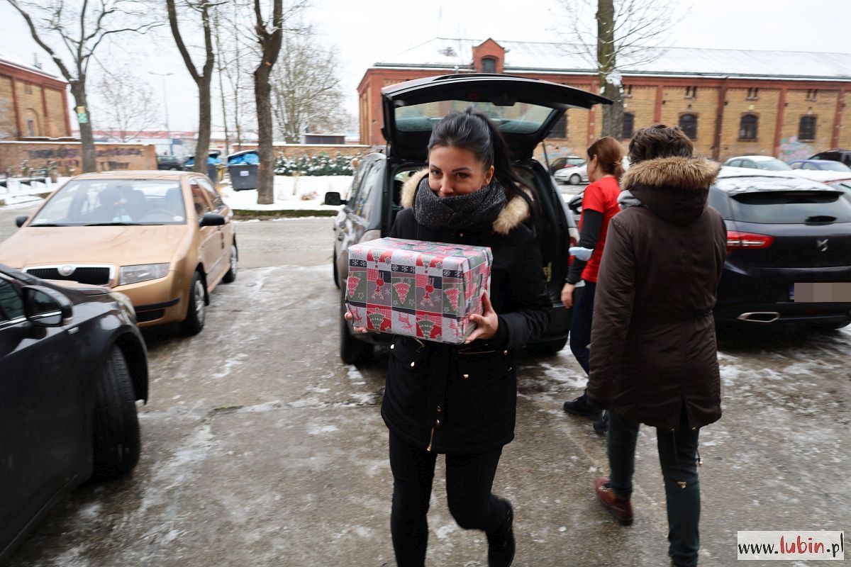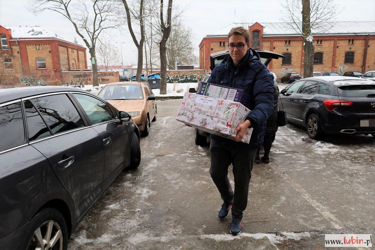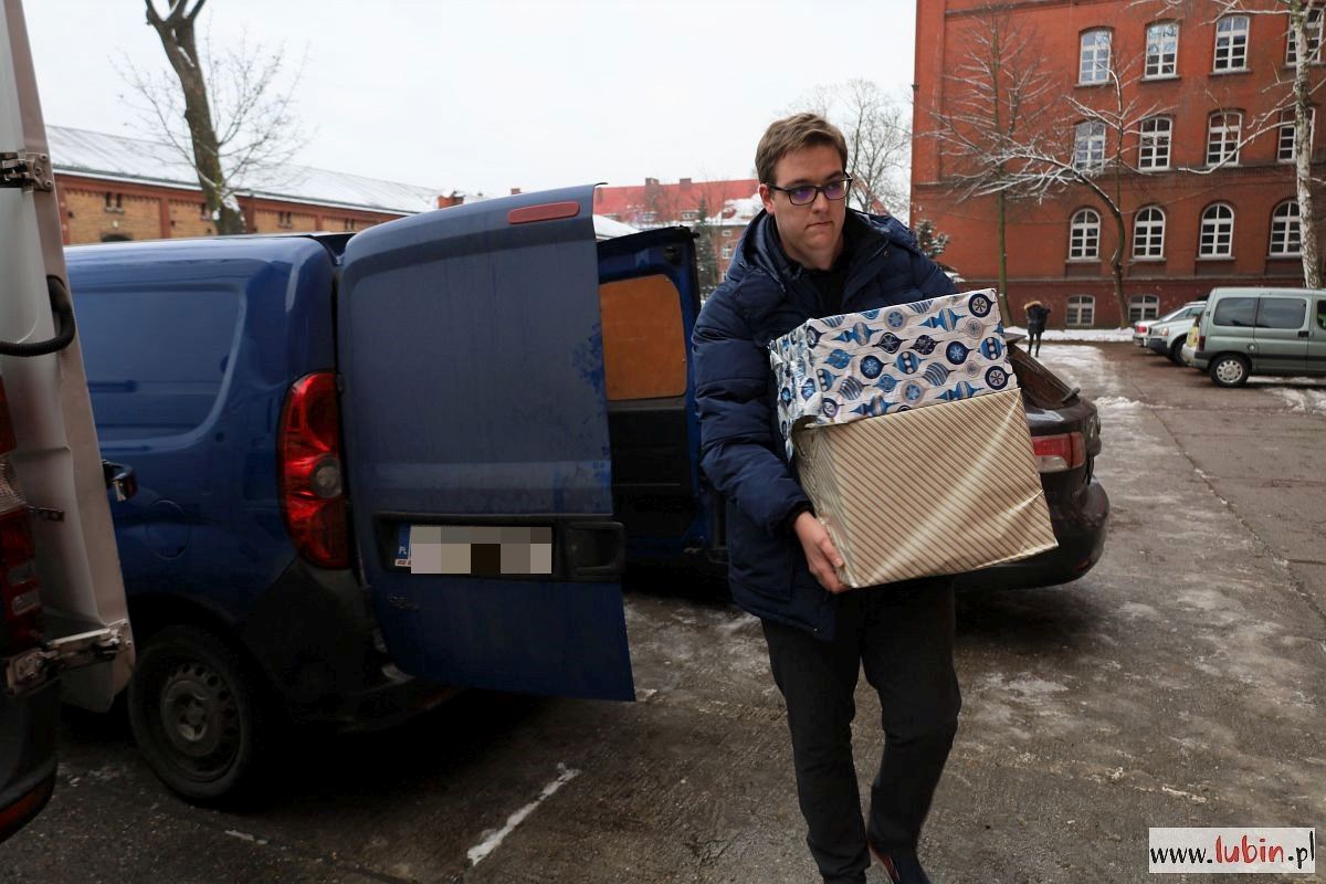 Pod budynek Zespołu Szkół nr 1, gdzie tym razem mieści się magazyn lubińskiej Szlachetnej Paczki, co jakiś czas podjeżdżają samochody wypełnione prezentami. Jesteśmy świadkami przeładunku jednej z większych paczek – ponad 30 kartonów trafia z samochodu darczyńcy do busa wolontariuszy. Wszystkie przeznaczone są dla jednej rodziny. Za chwilę zostaną dostarczone.