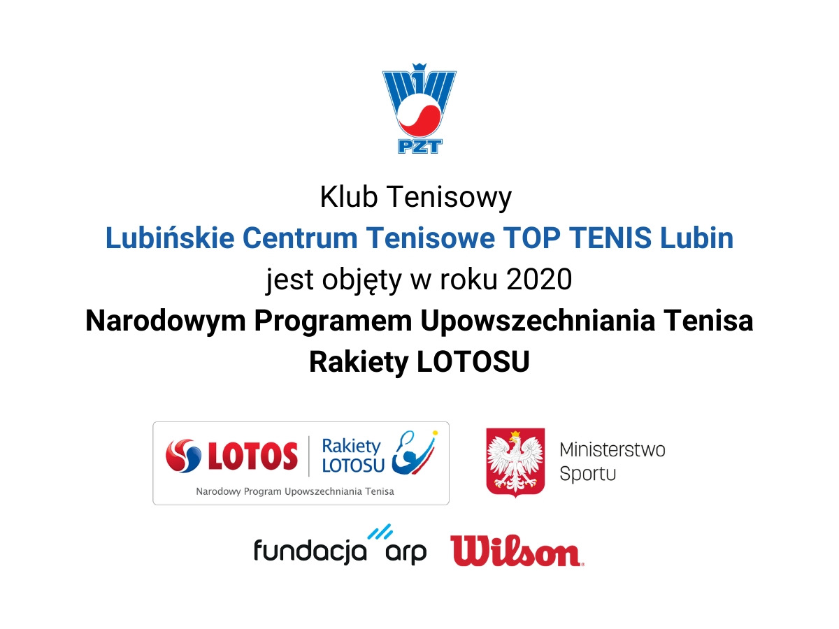 Narodowy Program Upowszechniania Tenisa – Rakiety LOTOSU w Top Tenis Lubin. Bezpłatne zajęcia dotyczą młodych ludzi do 10 roku życia. Pierwsze spotkanie dla rocznika 2013 i młodsi odbędzie się dziś o godzinie 16.00 na obiekcie przy ul. Baczynowej.