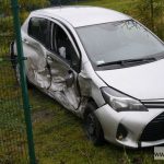– Kierowca peugeota jechał od strony ulicy Komisji Edukacji Narodowej w kierunku Legnickiej, z kolei kierująca toyotą skręcała z ulicy Legnickiej na małą obwodnicę. Doszło do zderzenia tych pojazdów, w wyniku czego toyota wypadła za barierki na teren działek – informuje asp. sztab. Jan Pociecha.