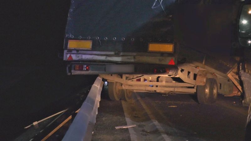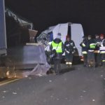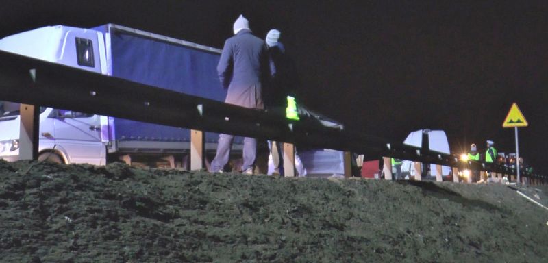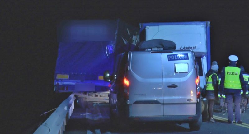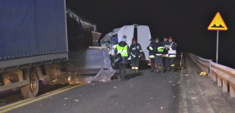 – Z nieznanych przyczyn przyczepa wypięła się z ciężarówki i uderzyła w pracowniczy bus. Uderzył w niego też citroen. W wyniku odniesionych obrażeń zginęły dwie osoby jadące busem, rannych zostało dwunastu pasażerów busa i trzy osoby jadące citroenem – informuje aspirant sztabowy Pociecha.