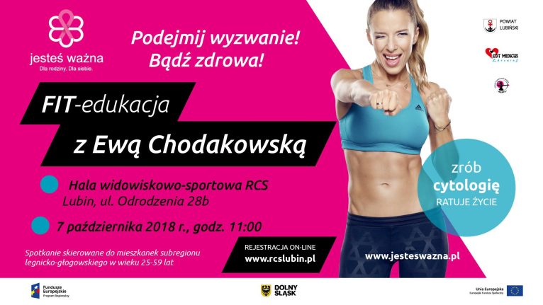 Trening z Ewą Chodakowską odbędzie się w niedzielę 7 października w lubińskiej hali widowiskowo-sportowej. Impreza rozpocznie się o godzinie 11, a zakończy o 14. Oprócz treningu głównego z Chodakowską, zaplanowano również między innymi rozgrzewkę z profesjonalnymi trenerami. W trakcie spotkania będzie się też sporo mówiło o profilaktyce raka szyjki macicy.