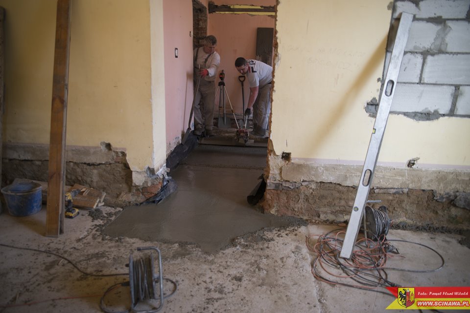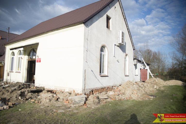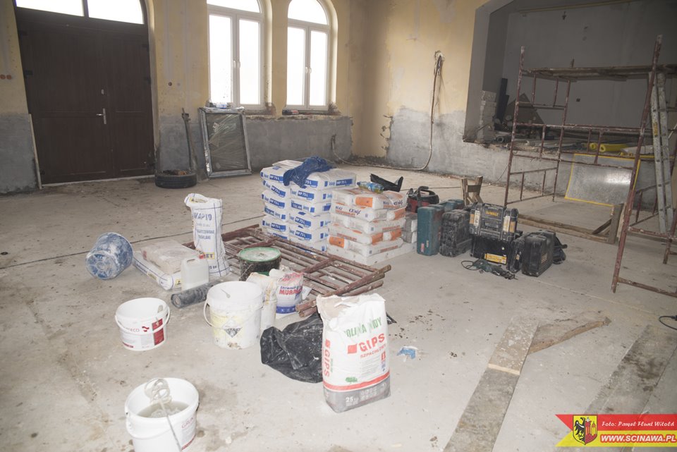 W ramach zadania wykonywane jest m.in.: odwodnienie całego budynku, izolacja i ocieplenie fundamentów, osuszanie ścian oraz zabezpieczenie ich przed wilgocią, wymiana starej instalacji elektrycznej i wodno-kanalizacyjnej, wyrównanie posadzek we wszystkich segmentach obiektu oraz sprowadzenie ich do jednego poziomu, wymiana stolarki drzwiowej i okiennej, remont bieżący pomieszczeń świetlicy, w tym sali głównej i sceny, kuchni, pomieszczenia pomocniczego oraz gospodarczego.